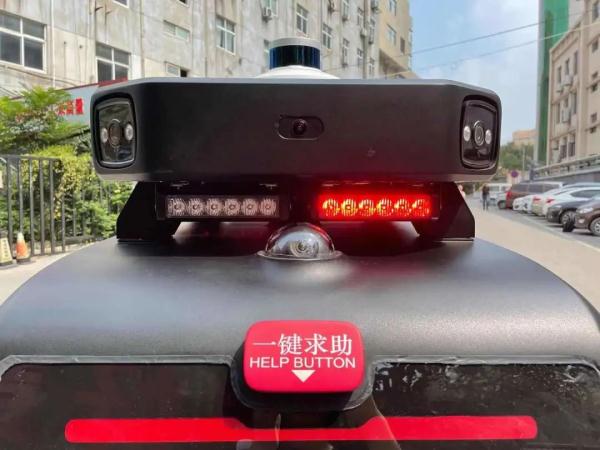 在这辆巡逻车的顶部,有一个“一键求助”按键,求助者通过巡逻车报警后,警情会同步到公安部门指挥中心,方便民警对报警、求助快速处置。